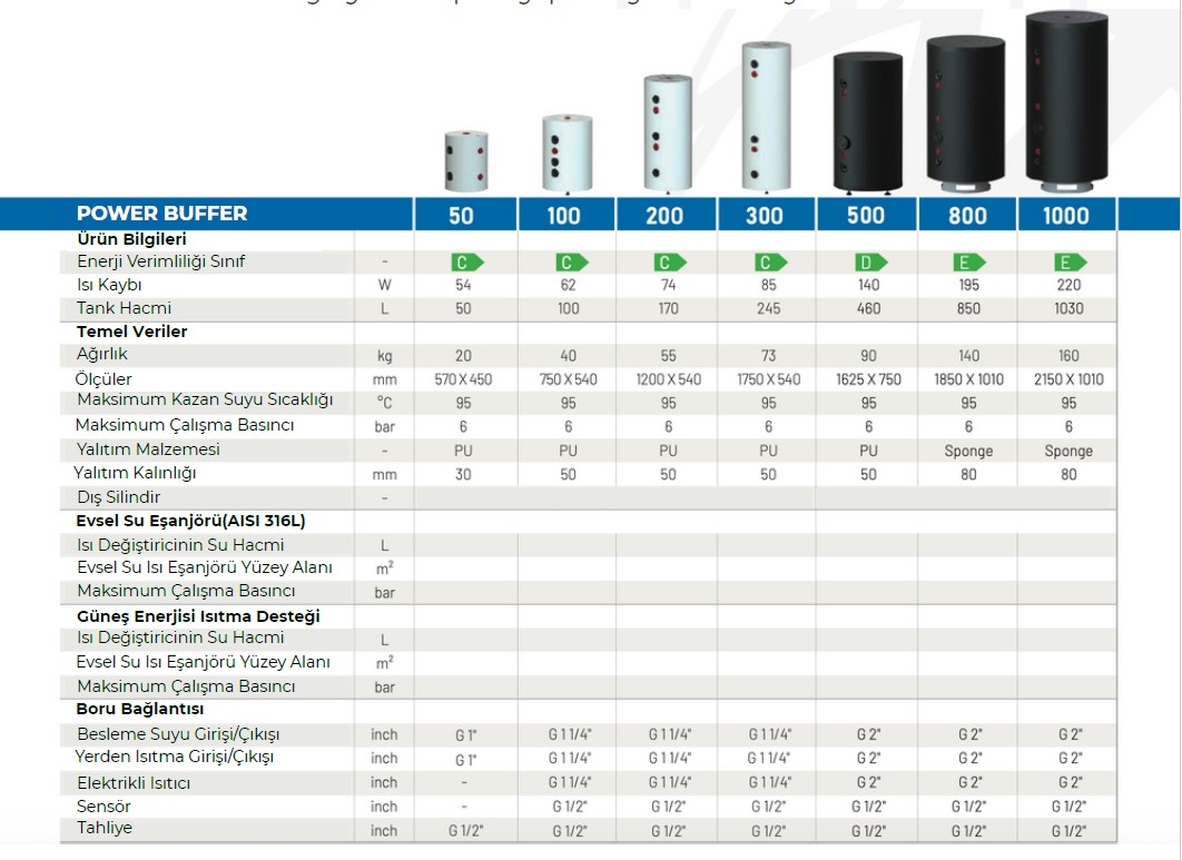 • Aynı zamanda fazla enerjiyi depolayarak ani ısı taleplerinde sıcak suyun hazır olmasını sağlar.