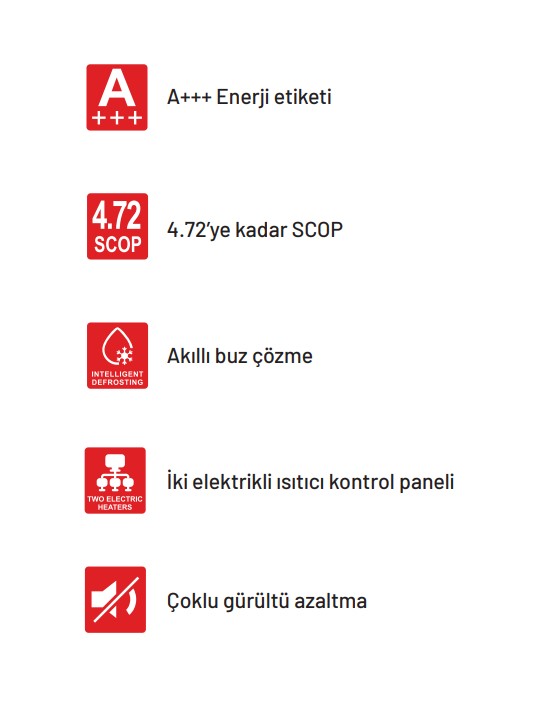 Wi-Fi ve IoT desteği ile sistemi her yerden uzaktan kontrol etme imkanı tanır. 0,1°C sıcaklık hassasiyeti ve renkli LCD ekran, kullanıcı dostu bir arayüz sunar. Yüksek COP ve SCOP değerleri ile enerji tasarrufu sağlarken, sağlam tasarımı uzun süreli güvenilir kullanım sağlar.